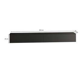 Nowoczesna komoda RTV 200 cm w czarnym matowym wybarwieniu z uchylnymi frontami. Konstrukcja pozwala na montaż wiszący lub według preferencji i własnych potrzeb stojący. Smukła, minimalistyczna forma, matowe wykończenie i dwa pojemne wnętrza. Mebel który łączy funkcjonalność z efektem dekoracyjnym.