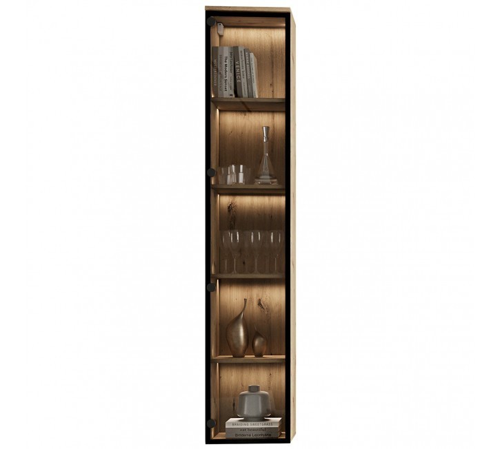 Czarna witryna wisząca ze szkłem GOFI 03 FIGO oświetlenie LED klasyczna wąska witryna ścienna