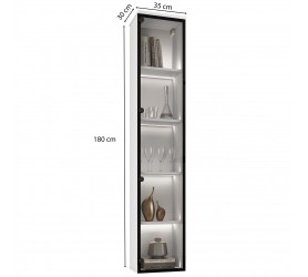 Nowoczesna witryna ścienna o smukłej formie. Oświetlenie LED efektownie podkreśli wnętrze witryny i nada nastrojowy, przytulny charakter w pomieszczeniu. Witrynka świetnie sprawdzi się w małych wnętrzach i dużych salonach w połączeniu z innymi elementami systemu GOFI.