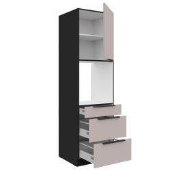 Słupek kuchenny pod zabudowę piekarnika z szufladami na prowadnicach premium. Cichy domyk w zestawie pozwala na lekkie i ciche użytkowanie.