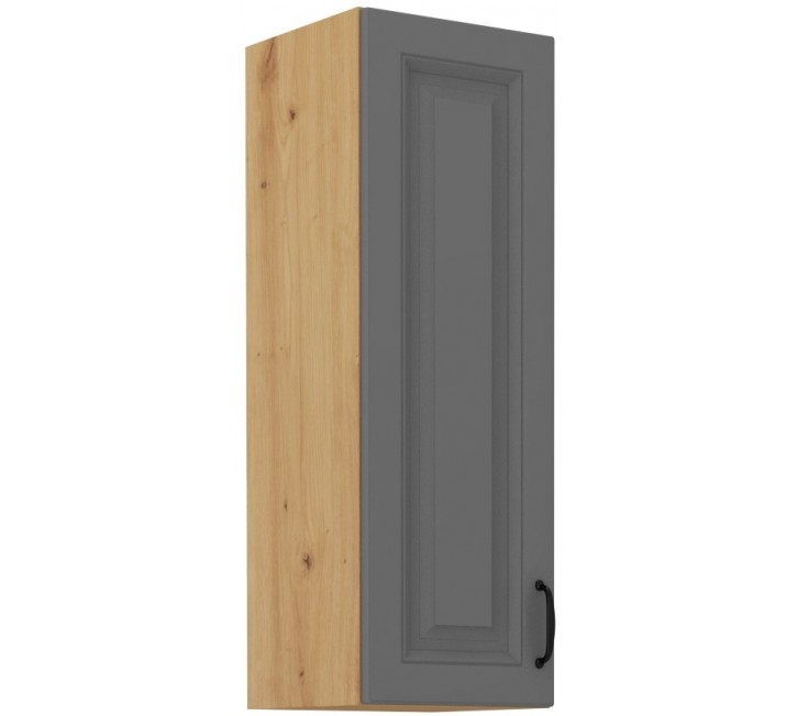 Szafka górna uchylna posiada trzy praktyczne i pojemne półki. Front wykonany jest z płyty MDF. Solidna konstrukcja pozwala na wieloletnie użytkowanie. Cichy domyk pozwala na cichą pracę elementu. Uniwersalny wymiar szafki pozwoli beż problemu stworzyć zestaw mebli kuchennych, wykorzystując maximum miejsca w kuchni. Zestaw mebli kuchennych STILO pozwala na wyposażenie swojej kuchni prostymi klasycznymi modelami po nowoczesne opcje.