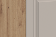 Front do zabudowy zmywarki w kilku ciekawych wybarwieniach do wyboru: klasyczna biel, naturalna imitacja drewna dąb artisan ciepły, naturalny odcień szarości z delikatną domieszką beżu clay grey czy odważny grafit. Frezowana ramka na froncie mebli kuchennych STILO nadaje im głębie i elegancję niezależnie od wybarwienia. Połączenie frezowanych frontów z czarnymi uchwytami to sprawdzony sposób na kuchnię z charakterem. Czarne uchwyty wprowadzają nowoczesny akcent i podkreślają linię zabudowy.