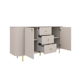 Komoda z szufladami 2D3S Lio 1 beż piaskowy 165 cm zaokrąglone fronty, ryflowane boki+ złote dodatki