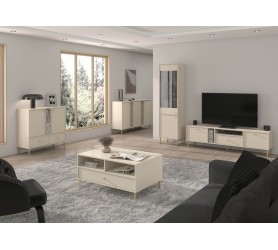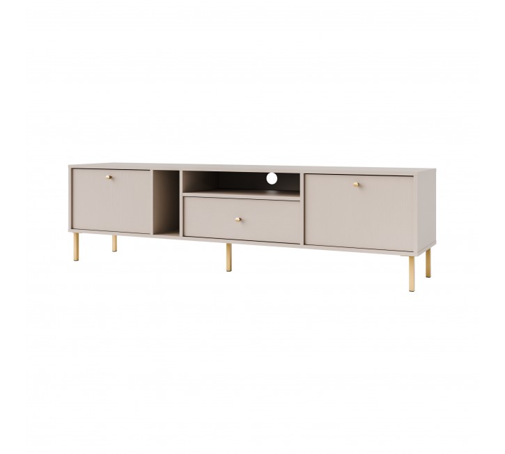 Komoda RTV NAYO 01 to minimalistyczna propozycja na urządzenie wnętrz. Smukle eleganckie metalowe nóżki lub ciekawe i abstrakcyjne rozgwiazdy w złotym lub czarnym kolorze nadają lekkości i elegancji. Komoda RTV została wykonana w sposób praktyczny i funkcjonalny. Komoda RTV NAYO to jeden z wielu elementów systemu, który tworzy spójną całość.