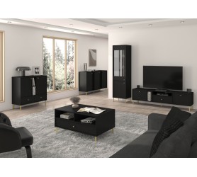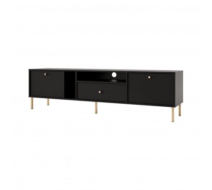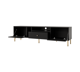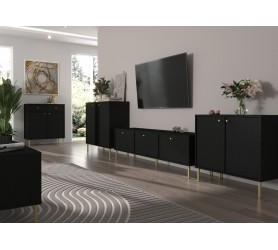 Komoda RTV NAYO 01 to minimalistyczna propozycja na urządzenie wnętrz. Smukle eleganckie metalowe nóżki lub ciekawe i abstrakcyjne rozgwiazdy w złotym lub czarnym kolorze nadają lekkości i elegancji. Komoda RTV została wykonana w sposób praktyczny i funkcjonalny. Komoda RTV NAYO to jeden z wielu elementów systemu, który tworzy spójną całość.