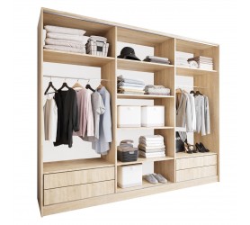 Kaszmirowa garderoba 270 cm bez frontów to nowoczesne i funkcjonalne rozwiązanie, idealne dla osób, które cenią sobie przejrzystość i wygodę użytkowania. Wyposażona w praktyczne półki, dwa drążki oraz funkcjonalne szuflady. Szafa otwarta to 270 cm to propozycja wyposażenia garderoby, sypialni czy przedpokoju. Warianty kolorystyczne pozwalają na wybór według swojego gustu. Szafa otwarta MERVI to wiele możliwości i kombinacji.
