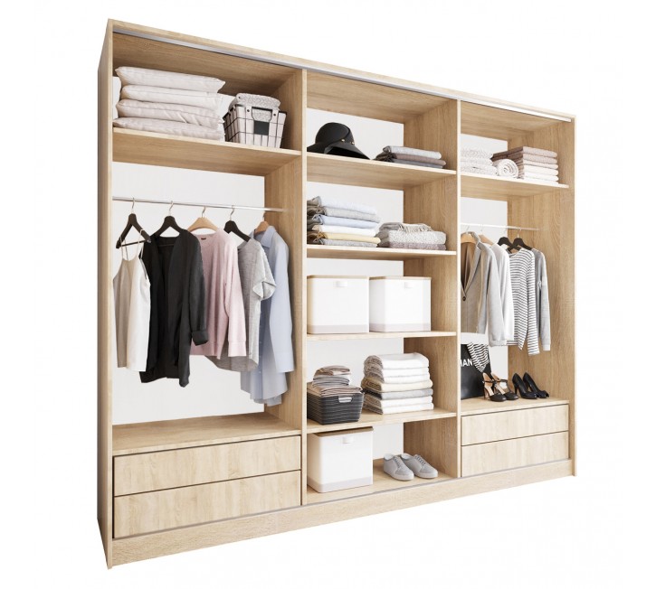 Otwarta szafa 270 cm to bardzo nowoczesna propozycja dla osób, które cenią minimalizm i funkcjonalność. Widoczna przestrzeń w szafie bezfrontowej pozwala na łatwy dostęp i nowoczesne użytkowanie. Otwarta garderoba 270 cm to także etetyka - wygląda bardzo stylowo oraz lepsza organizacja - szafa zachęca do utrzymania porządku. Kolor kaszmir nadaje subtelnego luksusu i sprawia, że wnętrze staje się wyrafinowane.